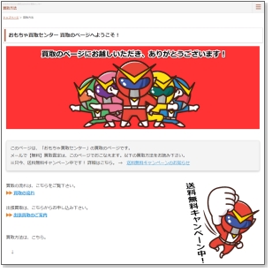 買取は、おもちゃカンパニーの新メインサイト「おもちゃ買取センタードットコム」で行います。下記リンクをクリックで、おもちゃ買取センタードットコムの「買取のページ」へ移動します。